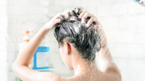 その後、手のひらで少し泡立てたシャンプーを頭皮につけて優しく洗うます。